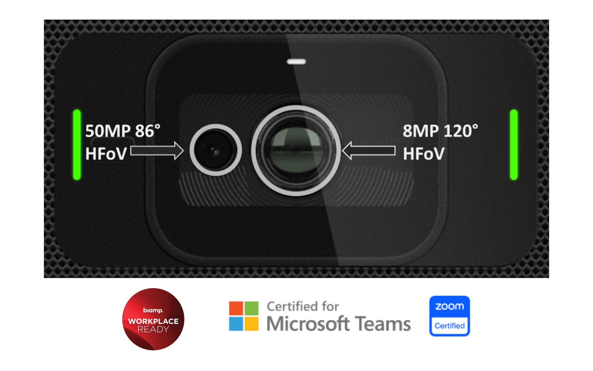 VBC 2800 er utstyrt med et nytt ePTZ-kamerasystem med dobbelt 50 MP + 8 MP, som lar alle møtedeltakerne komme tydelig med i bildet – selv langt ned langs lange møteromsbord. ePTZ-systemet gir opptil 16× digital zoom, og automatisk framing bytter mellom tele- og vidvinkelkamera for å sikre best mulig bilde.