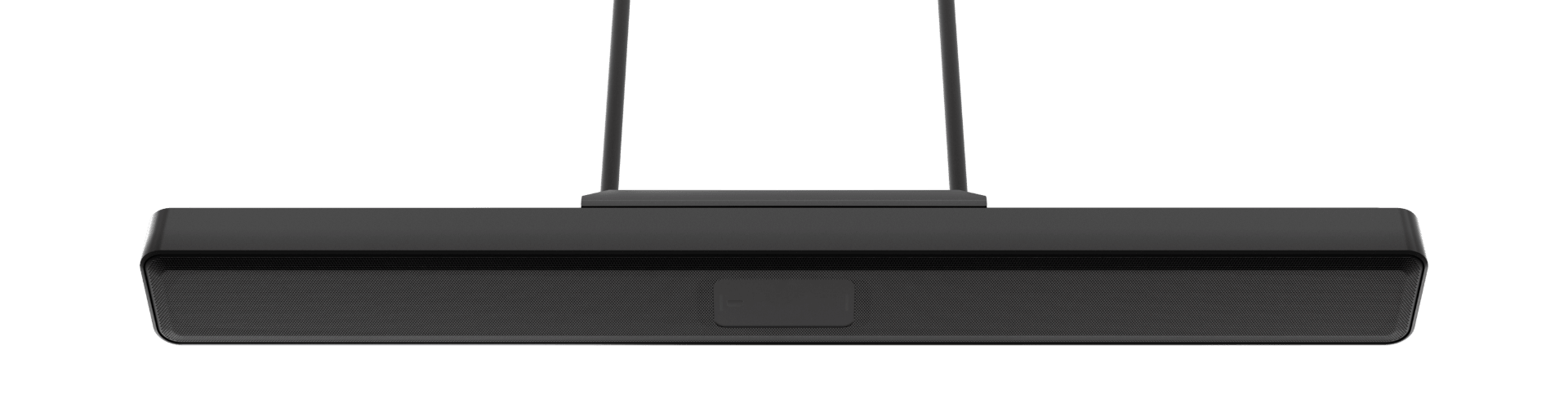 Parlé CBC 2500 CM er en takmontert, alt-i-ett konferansebar utviklet for samarbeidsrom der veggmontering kan være utfordrende. Med et elegant design som henges fra åpent himlingssystem ved hjelp av to diskrete kabler, kan CBC 2500 CM-settet installeres raskt og ryddig med to enkle festepunkter og dekorative deksler.