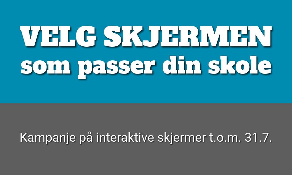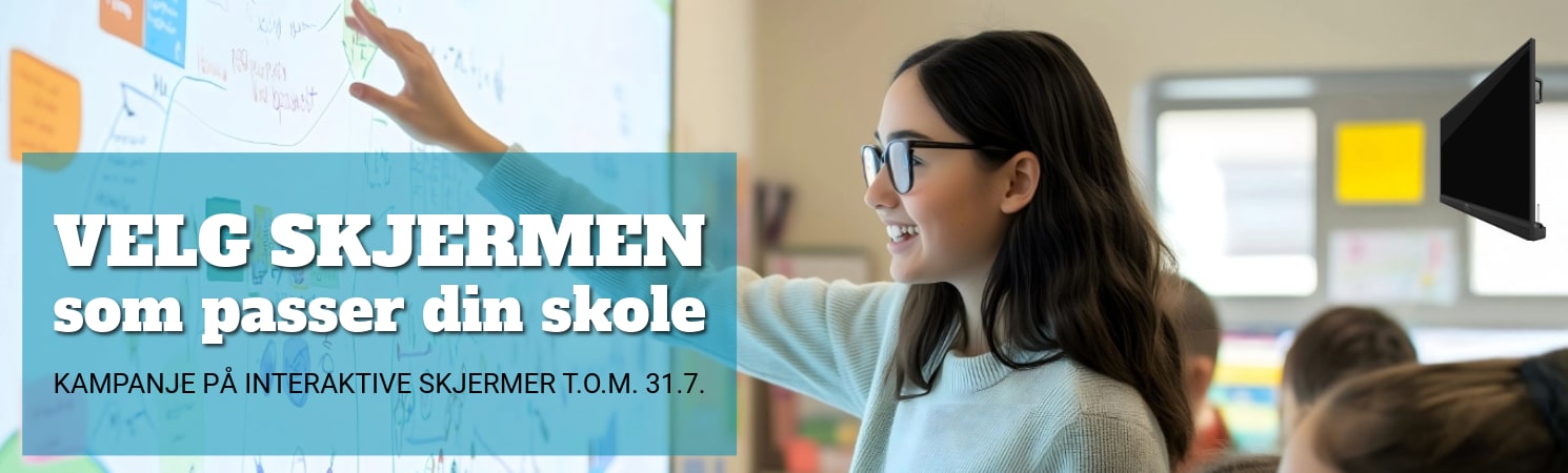 Vårt skoleteam hjelper dere med gode råd, men dere tar selv valget om hvilke skjermer og stativ som passer for dere.