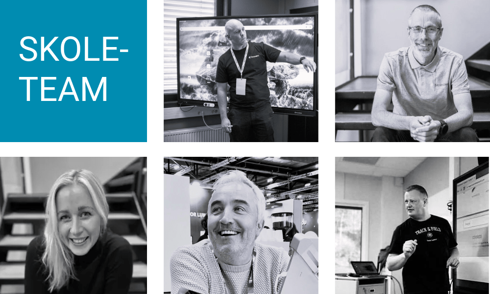Vi har til sammen mer enn 50 års erfaring fra klasserom, skoleledelse og som kommunale skolerådgivere. Og vi er den ENESTE distributøren med en dedikert person kun for å gi god support på interaktive skjermer, slik at skolen din får hjelp så raskt som mulig.